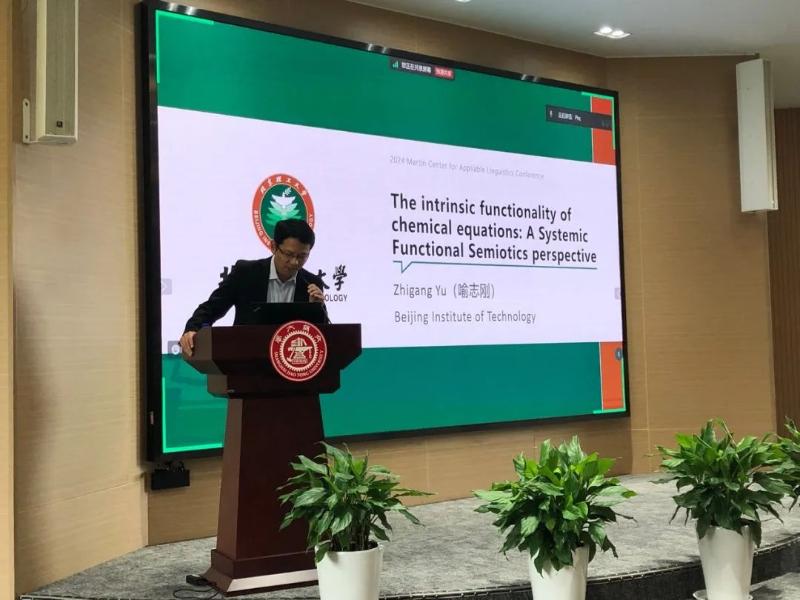 In the afternoon, Dr. Yu Zhigang from Beijing Institute of Technology presented a plenary speech titled "The Intrinsic Functionality of Chemical Equations: A Systemic Functional Semiotics Perspective", chaired by Dr. Yaegan Doran. Dr. Yu discussed the meaning functions of chemical equations at multiple levels from a systemic functional semiotic perspective, revealing the realization of relevant metafunctions and providing examples and inspiration for the description of non-verbal symbolic systems.