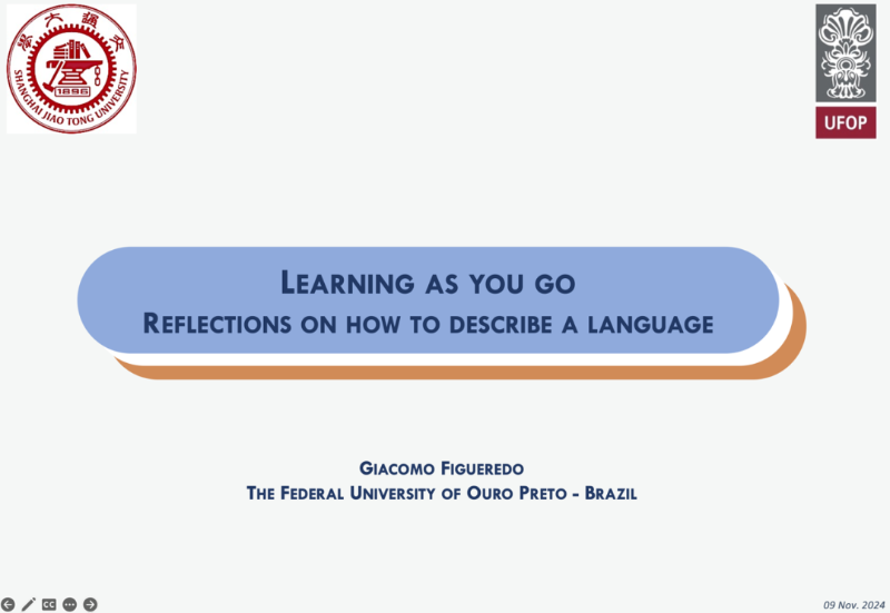 Dr. Giacomo Figueredo from the Federal University of Uberlândia in Brazil delivered an online keynote speech titled "Learning as You Go: Reflections on How to Describe a Language", chaired by Dr. Wang Pin. Dr. Figueredo shared his experiences in language description, discussing interpersonal values and other elements in the description process, and used Brazilian Portuguese to explore how context influences language description.